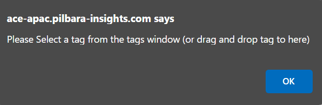 To add a tag, find the required tag in the tags window and press the “add (+)” button. If the "add(+)" button is clicked and the tags window is not already open, a prompt will appear and clicking 'Ok' will make the tags window appear.