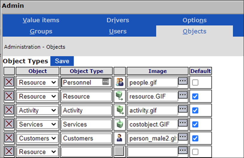 An object is an item in the model that holds values. While structures have icons that look like manila folders, objects have a variety of icons; examples include coins, people, boxes, and so on. In the example below, there are two objects under the structure called "OPE - OPERATE"